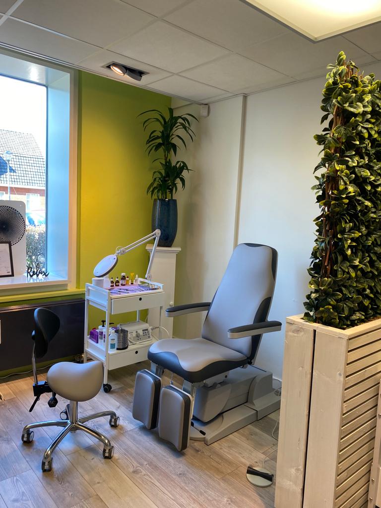 In onze praktijk staan twee behandelstoelen gescheiden met een plantenbak op wielen. Deze kan er dus tussen uit gereden worden als mensen dit prettig vinden. Met de plantenbak ertussen biedt het genoeg privacy.
